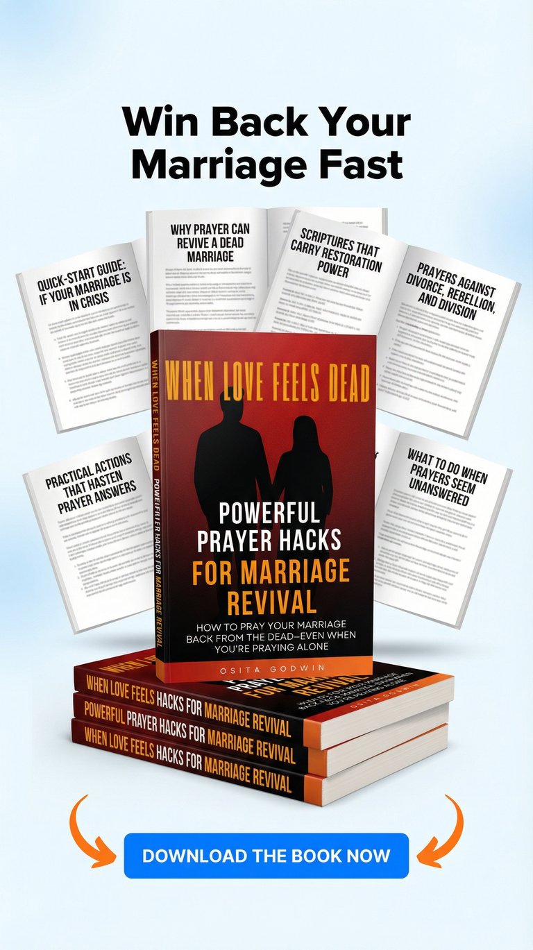 WHEN LOVE FEELS DEAD: Powerful Prayer Hacks for Marriage Revival Price: $7.97 This is not another “pray harder” message.This book explains: •why prayer works •why many prayers don’t •how prayer revives a dead marriage •scriptures that carry restoration power •how to identify marriage strongholds •what to pray against rebellion, division, and divorce •what to do during spiritual attacks •what to do when prayers seem unanswered This is the distilled wisdom of years of successful prayer — in one clear guide. It’s a quick read.But it rewires everything.